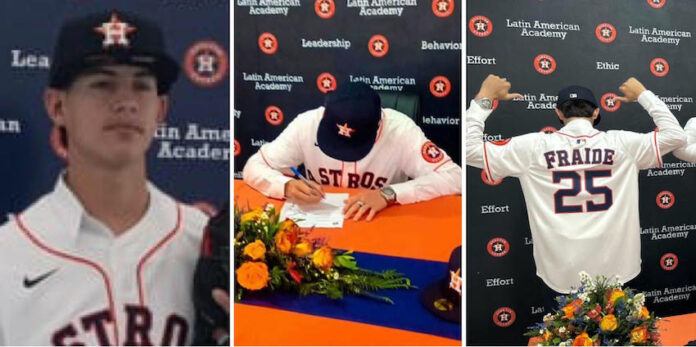 Empalme, Sonora.- El lanzador empalmense Juan Antonio Fraide Pacheco hizo el viaje junto con sus padres a República Dominicana para firmar con los Astros de Houston, en un día donde en Grandes Ligas se celebran firmas internacionales. Fraide Pacheco, perteneciente a los Saraperos de Saltillo ha llamado la atención por su velocidad en los lanzamientos como pitcher derecho, con una estatura de 1.80 metros ha estado en la selección mexicana de beisbol Under 18, así como con el equipo de Tomateros de Culiacán en el arranque de la Liga Mexicana del pacífico, pues fue tomado por ese equipo en el draft. Rosy Pachecho Figueroa y Gustavo Fraide Cota, sus pdres acompañaron al “Güerito” Fraide Pacheco a la firma en República Dominicana, donde los acompañó el scout Miguel Pintor, que fue uno de los principales promotores de su firma, junto con los otros lanzadores mexicanos, Adrián Ruiz, de Sinaloa, Ismael Said Obregón de San Luis Potosí y Emilio Payró desales de Tabasco. A partir de este día, el empalmense, junto con sus compatriotas y otros quince peloteros de Latinoamérica inician el proceso de preparación con miras a llegar al equipo “grande” de los Astros de Houston y en un momento dado debutar en la gran carpa.