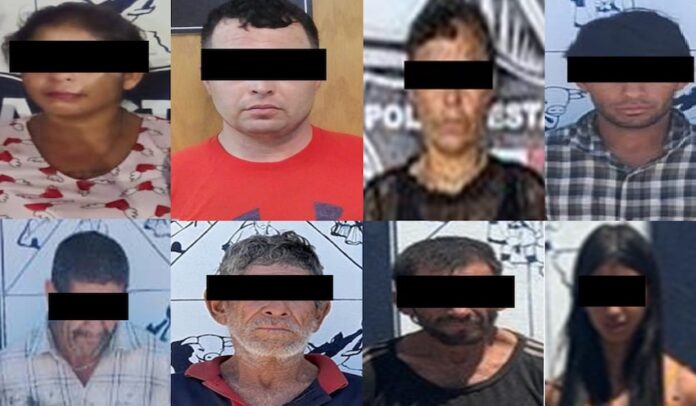 Por otra parte, al patrullar por colonias de Cajeme, lograron la detención de siete personas; entre estas, Liliana “N”, en la colonia Villas del Palmar, en posesión de 32 envoltorios con sustancia ilícita y, en Providencia, David “N” fue detenido al incautarle 14 bolsas con narcótico granulado, así como otras 17 dosis a Pánfilo “N” en Real del Norte.