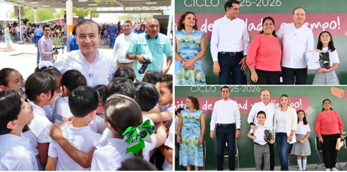 Hermosillo, Sonora.- Con el arranque de la entrega de uniformes gratuitos a estudiantes de nivel básico para el ciclo escolar 2025-2026, en la escuela primaria “Profr. Manuel Mirazo Navarrete” en Hermosillo, el gobernador Alfonso Durazo Montaño cumple su compromiso de fortalecer la educación en Sonora y asegurar que todos los estudiantes cuenten con las prendas escolares antes de iniciar el siguiente periodo de clases.
