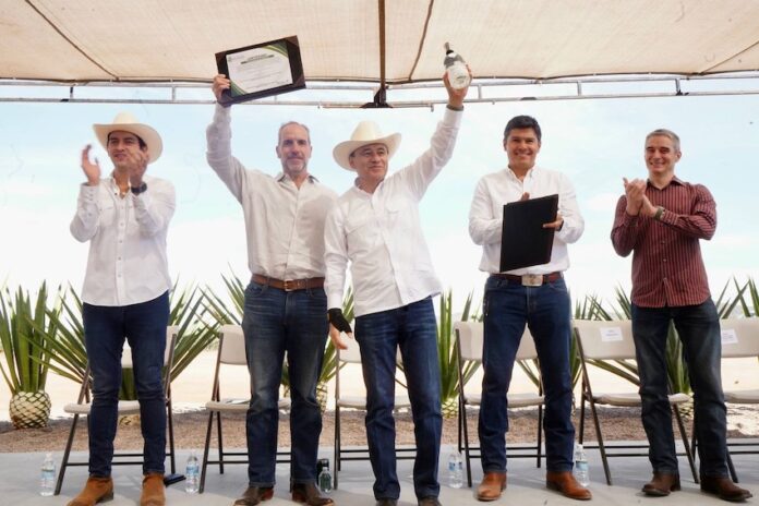Durante el evento, realizado en el Rancho El Seri, el mandatario sonorense entregó las primeras dos certificaciones oficiales de bacanora correspondientes a lotes que concluyeron satisfactoriamente el proceso de evaluación ante el Consejo Sonorense Regulador del Bacanora (CSRB), así como 10 placas simbólicas de codificación a productores cuyas vinatas ya han sido inspeccionadas y autorizadas.
