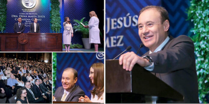Durante la ceremonia, el gobernador Durazo también reconoció la labor de la rectora saliente, María Rita Plancarte Martínez, por su liderazgo durante uno de los periodos más complejos en la historia de la institución, al enfrentar la pandemia por COVID-19, y participar activamente en la construcción de un nuevo marco legal universitario que permitió esta histórica elección rectoral.