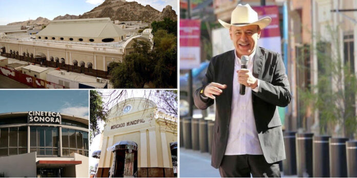 Hermosillo, Sonora.– En cumplimiento del compromiso de rescatar integralmente el Centro Cívico de Hermosillo y preservar el patrimonio del pueblo, el gobernador Alfonso Durazo Montaño consolida acciones de modernización y rehabilitación urbana en el Mercado Municipal No. 1 “José María Pino Suárez”, la Catedral Metropolitana, la Biblioteca Gerardo Cornejo Murrieta, la Cineteca Sonora y las vialidades aledañas a estos espacios emblemáticos.