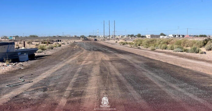 Puerto Peñasco, Sonora.– El Gobierno Municipal de Puerto Peñasco, a través de la Dirección de Servicios Públicos, continúa con los trabajos de raspado y regado de calles como parte del programa de mantenimiento vial impulsado por el presidente municipal, Dr. Óscar Castro.