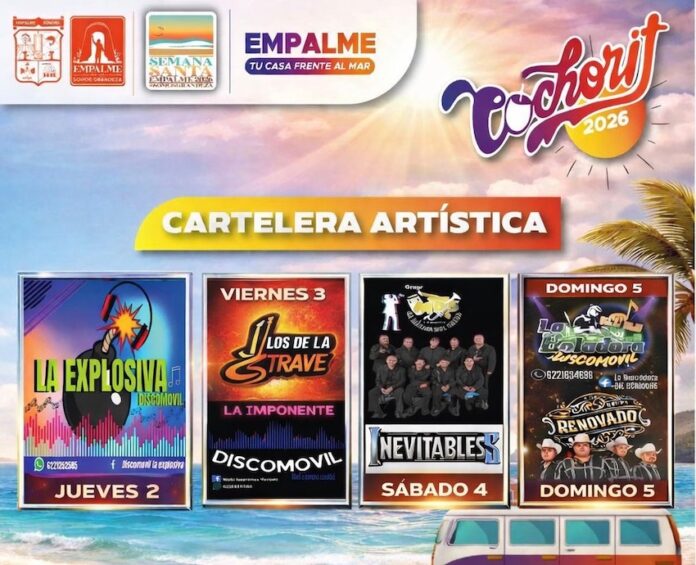 Empalme, Sonora.- Con la presentación de grupos musicales de la región, así como reconocidas discomóviles, el ambiente estará garantizado durante los días de Semana Santa en la playa de El Cochórit.