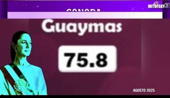 Guaymas, Sonora.- De acuerdo con datos de Consulta Mitofsky, presentados por Roy Campos, Guaymas es el municipio de Sonora donde la presidenta Claudia Sheinbaum registra su nivel más alto de aprobación, con un 75.8 por ciento de respaldo ciudadano.