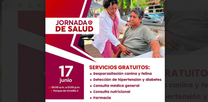 Guaymas, Sonora.- A través de servicios de salud gratuitos para trabajar el tema de la prevención de enfermedades, este martes 17, de 9:00 de la mañana hasta las 13:00 horas, familias del sector Ocotillo 2 recibirán atención a través de la jornada de salud, anunció Austria Castro Gracia.