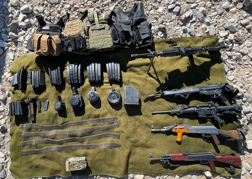 Hallan arsenal en camino de terracería de Sonoyta; armas largas, cargadores, cartuchos útiles y equipo táctico.
