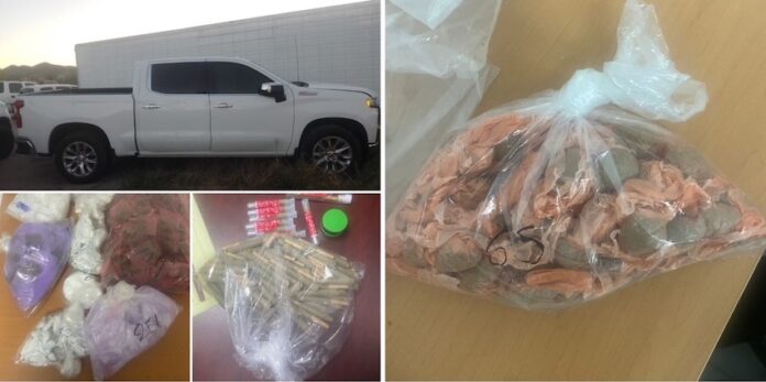 De acuerdo con la indagatoria, elementos de la Secretaría de la Defensa Nacional (SEDENA) en coordinación con elementos de la Guardia Nacional (GN), en inmediaciones de la colonia San Carlos, en Nogales, Sonora, localizaron y aseguraron un vehículo, que contenía en su interior dos kilos de cocaína, 469 envoltorios con 14 gramos 655 miligramos de metanfetamina, 414 envoltorios con marihuana y 105 cigarros de marihuana, contenidos en recipientes.