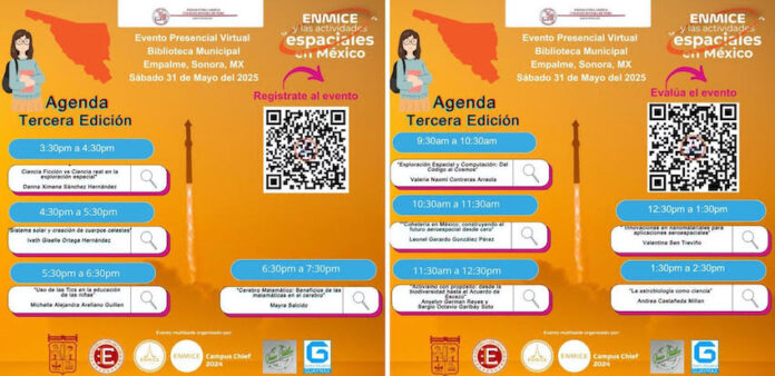 Las actividades van a dar inicio en punto de las 9:00 horas, en las que se van a incluir temas como “Exploración espacial y computación: Del código al cosmos”; “Cohetería en México: Construyendo el futuro aeroespacial desde cero”; “Activismo con propósito: Desde la biodiversidad hasta el acuerdo de Escazú”, entre otros.