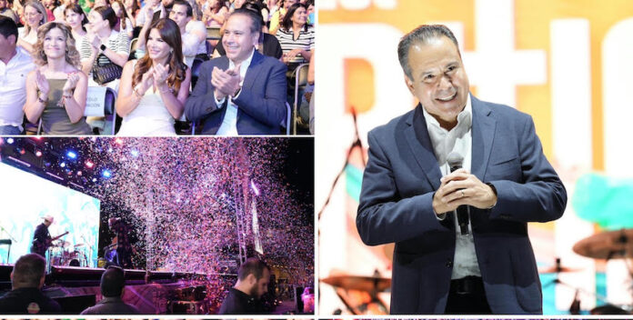 Junto a su esposa Patricia Ruibal, Astiazarán Gutiérrez pidió a los presentes que disfruten porque se lo merecen y todo se preparó con mucho cariño para todas y todos ustedes, que sean estas fiestas de Pitic 2025 un ejemplo de cómo la H suena y suena muy fuerte.