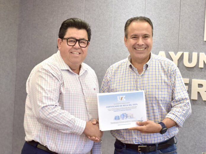 En la reunión, recibió cinco becas del 100%, las cuales serán asignadas a jóvenes estudiantes de nuevo ingreso por medio del Instituto Hermosillense de la Juventud (IHJ).