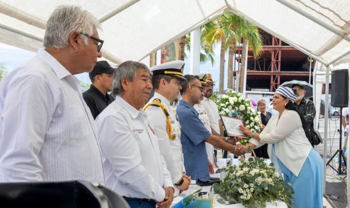 Durante el acto, se entregaron más de 20 reconocimientos a trabajadoras y trabajadores del mar, tanto en vida como de manera póstuma, reconociendo su trayectoria, esfuerzo y la huella imborrable que han dejado en la historia marítima de Puerto Peñasco.
