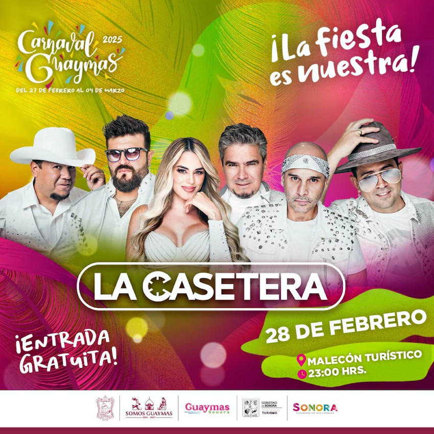 No puedes perderte hoy la presentación de La Casetera en el Malecón Turístico a partir de las 23:00 horas. ¡Ven con tu familia y amigos y disfrutemos una gran fiesta! Entrada gratuita #Guaymas #SomosGuaymas #HaciendoLaDiferencia #LaFiestaEsNuestra