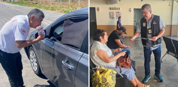 A ras de suelo y cercanos a la gente, los equipos conformados por personal del Centro de Control, Comando, Comunicación, Cómputo, Coordinación e Inteligencia (C5I) distribuyen material informativo en español e inglés, con las emergencias que pueden reportarse a la línea 9-1-1 y la denuncia anónima de delitos al 089.