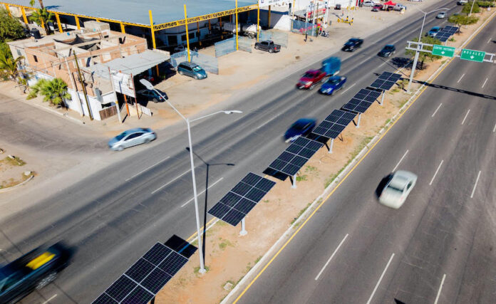 Hermosillo, Sonora.- Con el objetivo de avanzar hacia la transición de un Hermosillo más sustentable, el Gobierno Municipal de Hermosillo a través de la Agencia Municipal de Energía y Cambio Climático, AMECC, instaló un sistema de paneles solares que alimentará las luminarias del bulevar Manuel Clouthier.