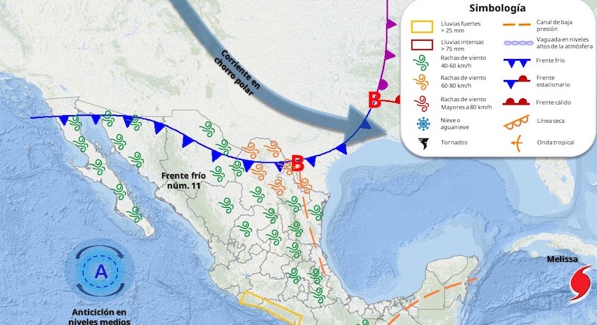 InicioIngresa el frente frío No.11#Hermosillo Ingresa el frente frío No.11; generará un descenso en las temperaturas, así como rachas de viento moderadas en el noroeste y costa del centro del estado.