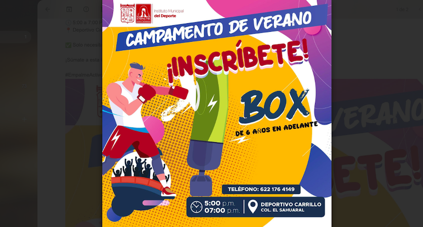 #Empalme Inicia el IMD el Campamento de Verano de Box; que se estará llevando a cabo del 21 de julio al 4 de agosto en el Deportivo Carrillo.