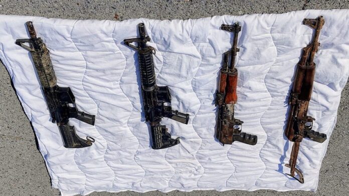 En el lugar establecieron un perímetro de seguridad y al efectuar una inspección en la zona localizaron 4 fusiles de asalto.
