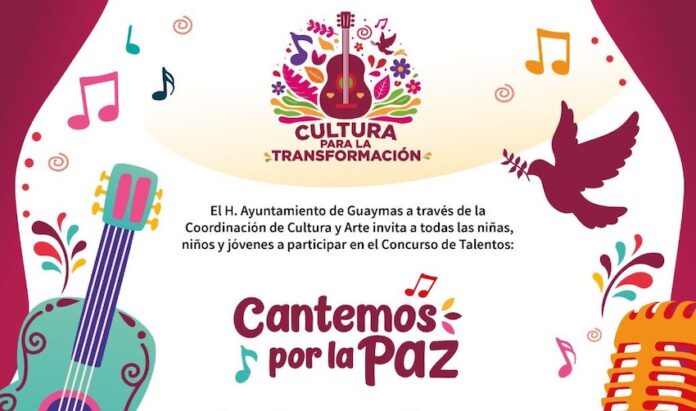 Guaymas, Sonora.- El Ayuntamiento de Guaymas a través de la Coordinación de Cultura y Arte invita a todas las niñas, niños y jóvenes a participar en el Concurso de Talentos “Cantemos por la Paz”, como parte del programa Cultura para la Transformación.