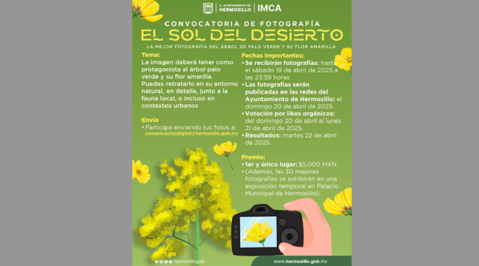 Las fotografías concursantes serán publicadas en las redes oficiales del Ayuntamiento de Hermosillo el domingo 20 de abril, donde el ganador será el que alcance el mayor número de “likes” orgánicos del domingo 20 al lunes 21 de abril.