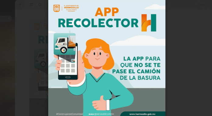 Hermosillo, Sonora.- A utilizar la aplicación “Recolector H” en los teléfonos móviles, para que las y los usuarios puedan estimar horarios y conocer la ruta del servicio de recolección de basura, invitó el director de Servicios Públicos Municipales.