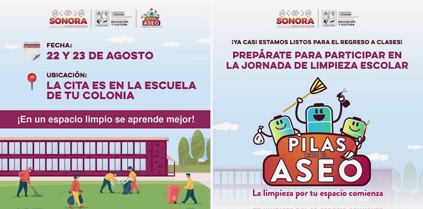 Invita SEC Sonora a participar en la jornada de limpieza escolar; ponen en marcha el proyecto «Pilas con el aseo».