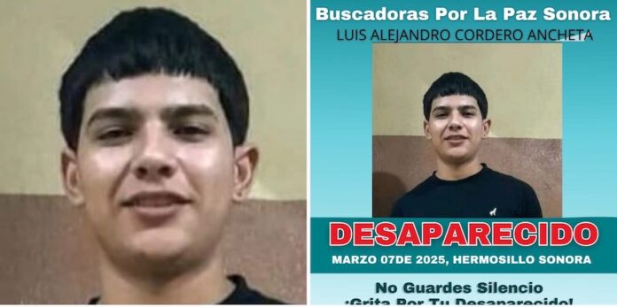 Hermosillo, Sonora.- En esta ciudad se está buscando al joven Luis Alejandro Cordero Ancheta, de 21 años de edad, vecino del sector Villa Verde.