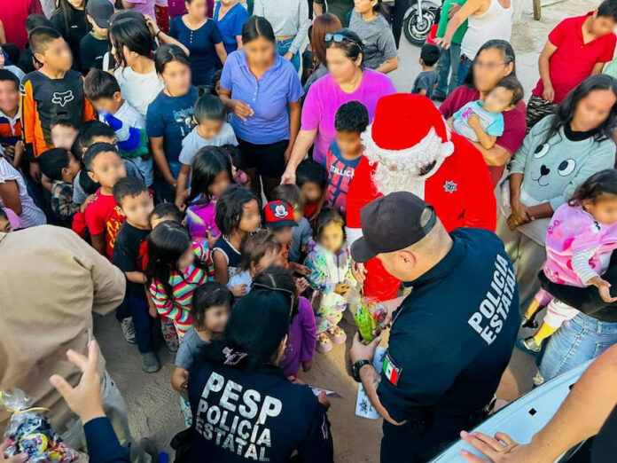 Hermosillo, Sonora.- Con un profundo sentido humano y solidario, la Policía Estatal de Seguridad Pública (PESP) compartió alegría y esperanza con niñas y niños de diversos municipios de Sonora, mediante actividades decembrinas enfocadas en sectores vulnerables, fortaleciendo la cercanía con la comunidad.