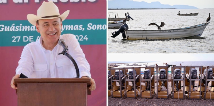 Las Guásimas, Sonora.- En cumplimiento al Proyecto Estratégico para el Desarrollo Pesquero para Justicia del Pueblo Yaqui, el gobernador Alfonso Durazo Montaño y el Comisionado Nacional de Acuacultura y Pesca (Conapesca), Octavio Almada Palafox, entregaron 77 embarcaciones y 77 motores fuera de borda, que en su conjunto forman un binomio, a pescadores de Las Guásimas con lo que suman 303 equipos con una inversión de 106.8 millones de pesos.