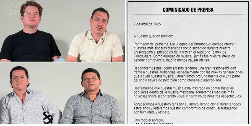 #NACIONAL ¡Los Alegres del Barranco se disculpan!; como agrupación musical, jamás fue nuestra intención generar controversia, mucho menos causar ofensa, señalan en un comunicado.