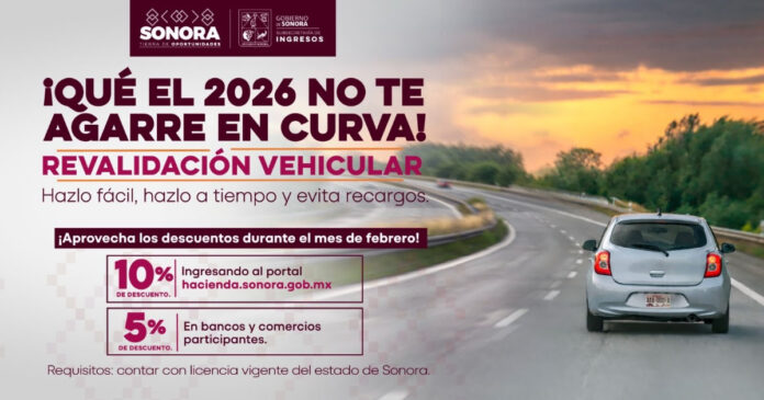 Hermosillo, Sonora.- El Gobierno de Sonora, a través de la Subsecretaría de Ingresos de la Secretaría de Hacienda, continúa ofreciendo descuentos para la revalidación vehicular 2026 durante los meses de febrero y marzo.