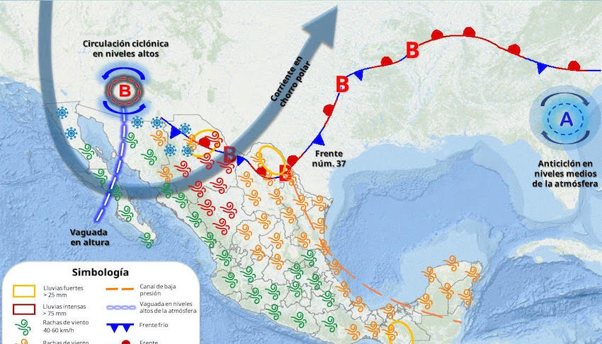 Inicio Nuevo frente frío continuará interaccionando con vaguada y con corriente de chorro polar #SONORA Nuevo frente frío continuará interaccionando con vaguada y con corriente de chorro polar; ocasionando rachas muy fuertes a intensas de viento con velocidades de 40 a 60 km/h sobre el oriente y 30 a 40 km/h en Sonora.
