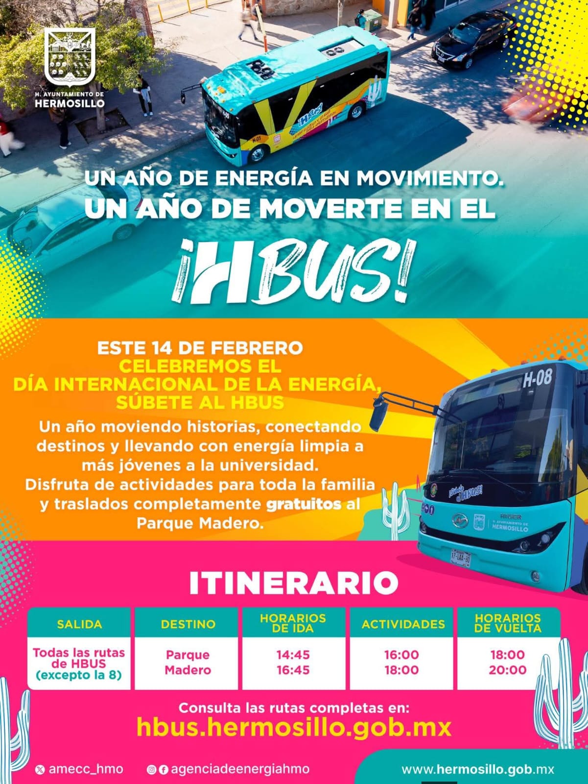 Inicio Ofrecerá Gobierno Municipal de Hermosillo paseos gratuitos en el H Bus al Parque Madero Ofrecerá Gobierno Municipal de Hermosillo paseos gratuitos en el H Bus al Parque Madero; el próximo sábado 14 de febrero usuarias y usuarios de este servicio podrán aprovechar viajes en camiones eléctricos acompañados por sus familias.