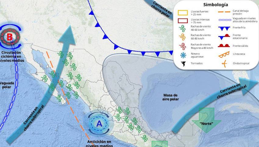 Inicio Probabilidad de lluvias ligeras aisladas durante la noche y madrugada del sábado #Sonora Probabilidad de lluvias ligeras aisladas durante la noche y madrugada del sábado; a su vez, rachas de viento fuertes (40 a 60 km/h) sobre la región norte y oriente de Sonora.