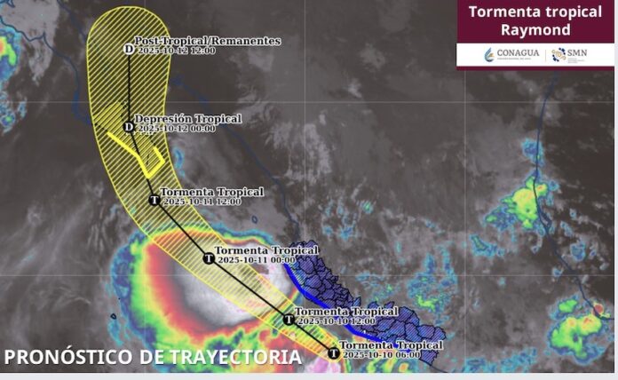 A su vez, un se mantiene en vigilancia la tormenta tropical “Raymond”. Dicho sistema mantiene una tendencia de trayectoria hacia el noroeste del país, por lo que mantiene alta probabilidad de ocasionar precipitaciones fuertes a muy fuertes durante el próximo fin de semana en todo el estado de Sonora. Aunado a esto, generará un aumento en la velocidad de los vientos con rachas de 70 a 90 km/h sobre la línea costera sur, así como oleaje de 3 a 5 metros en municipios costeros y comunidades pesqueras.