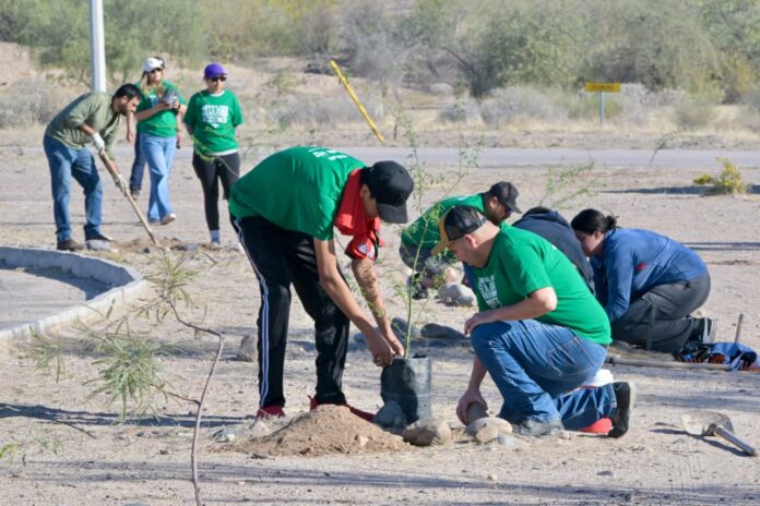 Hermosillo, Sonora.- Más de 200 voluntarios participaron en una jornada masiva de rehabilitación ambiental realizada en el Ecoparque, al poniente de Hermosillo, donde llevaron a cabo labores de limpieza, reforestación con 250 ejemplares, riego y pintura.