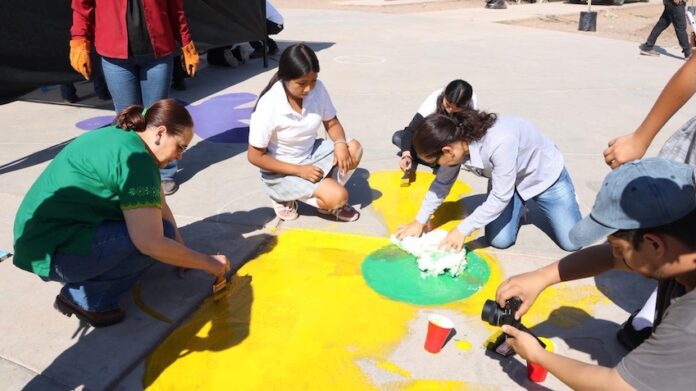 Guaymas, Sonora.- Como una alternativa de expresión colectiva donde el arte, el deporte y cuidado del medio ambiente se unen, este miércoles se realizó en la comunidad de Vícam la Jornada Nacional de Tequios por la Tierra y Murales Mundialistas.