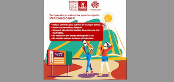 Empalme, Sonora.- Ante las altas temperaturas que se registran en la región, el Ayuntamiento de Empalme, a través de la Coordinación Municipal de Protección Civil y Municipal de Salud, exhorta a la ciudadanía a seguir estas recomendaciones para prevenir afectaciones a la salud.