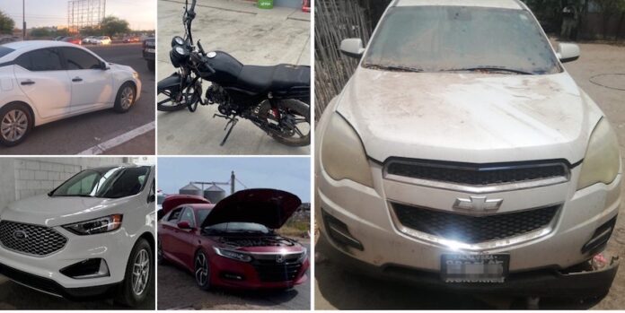 Asimismo, seis vehículos fueron localizados en San Luis Río Colorado, cuatro en Cajeme y el resto en operativos realizados en Benito Juárez, Bácum, Estación Don, Nogales, Santa Ana y Magdalena.