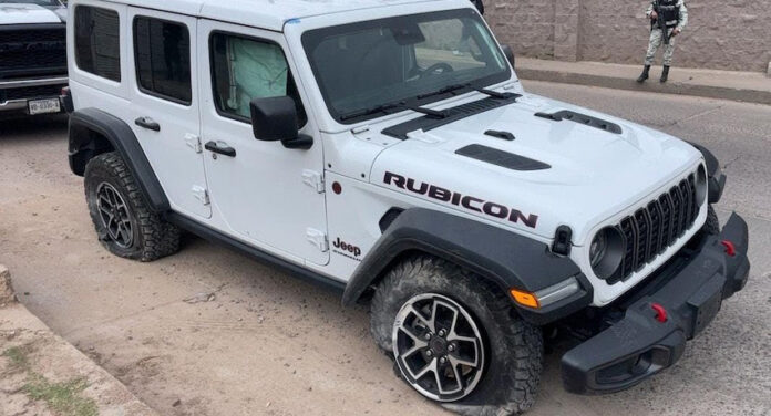 Mientras tanto, en una acción coordinada con Guardia Nacional, frustraron el trayecto de José «N» cuando ingresaba ilegalmente y a exceso de velocidad sobre la salida de la garita Mariposa el Jeep Rubicon que conducía.