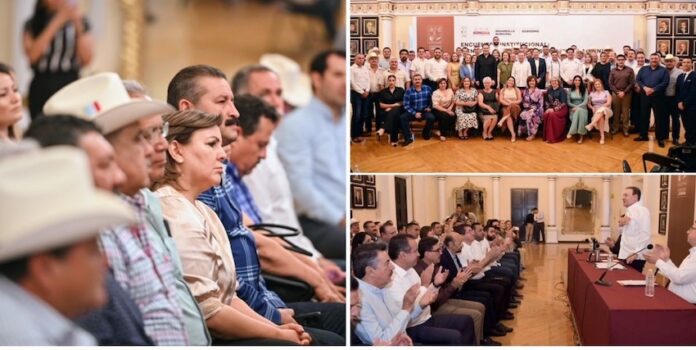 Hermosillo, Sonora.- Con el fin de alinear esfuerzos entre el estado y los municipios, que beneficien el desarrollo regional y hagan frente a los desafíos futuros de Sonora, el Gobernador Alfonso Durazo Montaño encabezó el Encuentro Institucional: Bienvenida a las Nuevas Administraciones Municipales 2024-2027.