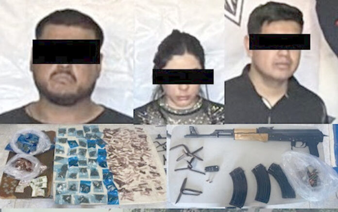 En una acción distinta, también en Cajeme, la Policía Estatal aprehendió a Kevin “N”, de 25 años, y a Milagros “N”, de 37 años, por la portación de un arma de fuego marca Taurus calibre 9 milímetros, con su respectivo cargador abastecido con ocho cartuchos útiles. Además, se aseguraron 20 envoltorios de una sustancia con características similares al cristal. El aseguramiento se efectuó en la colonia Misión del Sol II.