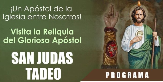 Guaymas, Sonora.- La reliquia de San Judas Tadeo, también viene a Guaymas, el próximo día martes 22 de julio estará en la Parroquia que lleva su nombre en el sector de Lomalinda.
