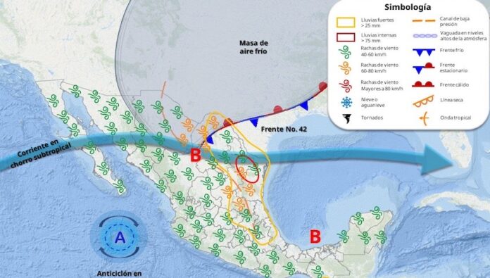 Asimismo, la *corriente en chorro subtropical* originará rachas de viento de los 30 a los 40 km/h en gran parte del territorio estatal.