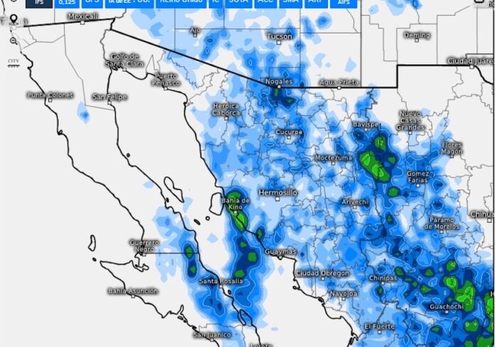 Por efectos de una vaguada en altura en combinación con el ingreso de humedad proporcionado por el Golfo de California