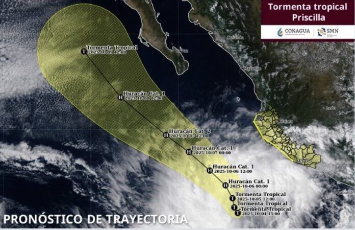 La trayectoria pronóstico indica que, en los próximos días, Priscilla recorrerá paralelamente las costas del occidente del país.