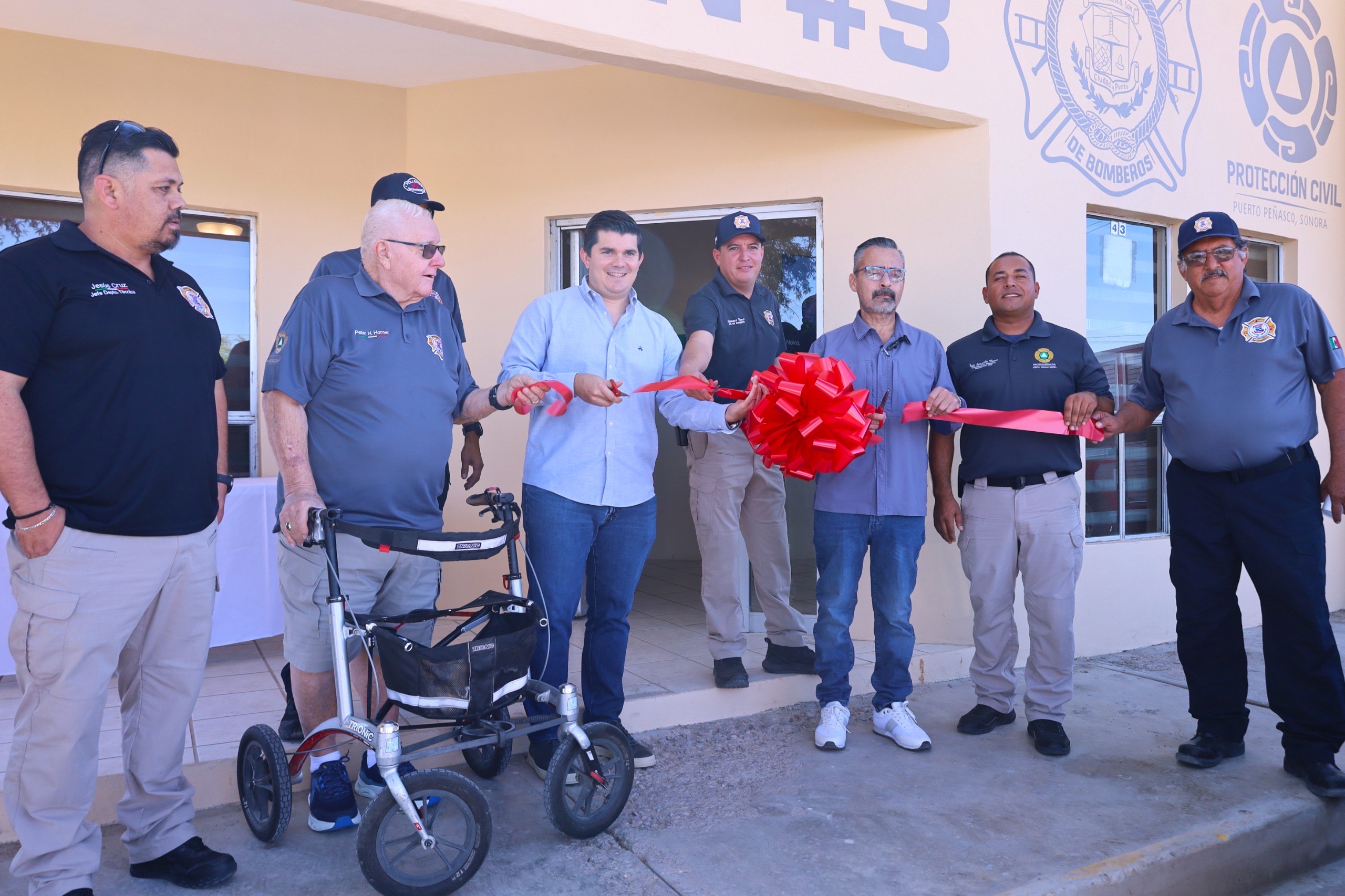 #Puerto Peñasco Se inaugura la remodelación de la Estación 3 de Bomberos; encabeza la ceremonia el presidente municipal, doctor Oscar Castro.