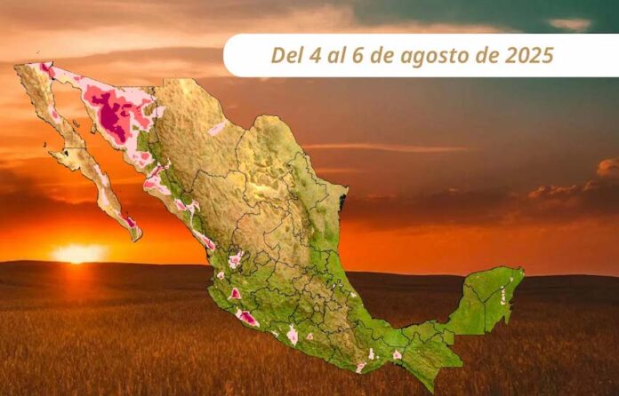 Para hoy, debido a la aproximación de una circulación anticiclónica se mantendrá una onda de calor con ambiente de caluroso a muy caluroso con temperaturas máximas entre 40 a 45°C incluso superiores en los valles y en el noroeste de la entidad Sonorense. También, generará una disminución en la generación de tormentas a partir del día martes.