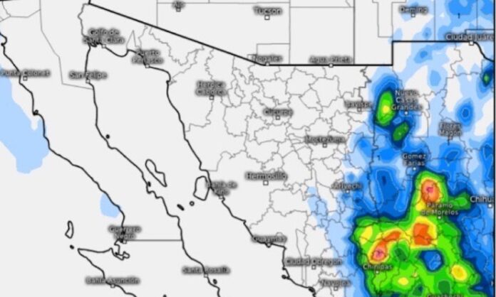 Por otro lado, debido a la aproximación de una *vaguada en altura* en interacción con el ingreso de humedad del Océano Pacífico generarán condiciones de inestabilidad suficiente para el desarrollo de una o varias tormentas sobre la región de la Sierra Madre Occidental. Dónde, se prevén lluvias puntuales de 10 a 50mm con bastante actividad eléctrica y vientos fuertes.