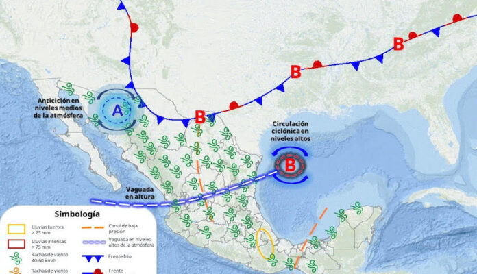 Para hoy, el posicionamiento de un anticiclón sobre el noroeste del país originará cielos mayormente despejados sin probabilidad de lluvia en todo Sonora. Asimismo, se prevé un ambiente cálido a caluroso por la tarde; fresco al amanecer y noche. Por su parte, tiempo ventoso se presentará sobre municipios noroeste con rachas de 40 a 50 km/h.